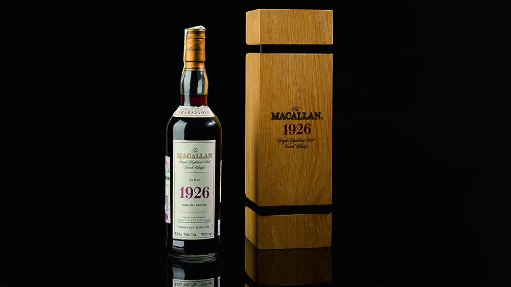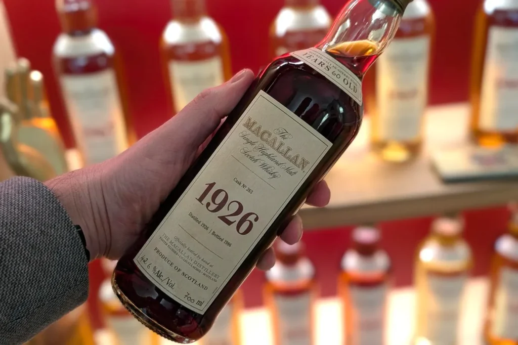 Zacznijmy od konkretów. Rekordowa butelka to The Macallan 1926 60 Year Old z casku numer 263. Destylowana w 1926 roku, butelkowana w 1986. Dojrzewała przez sześćdziesiąt lat w beczkach z europejskiego dębu przygotowanych pod sherry. Moc alkoholowa? 42,8% ABV.