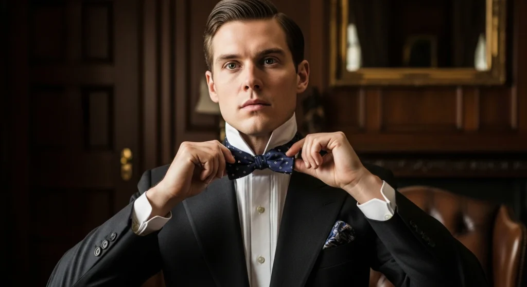 Dobrze dobrana mucha sygnalizuje, że myślałeś o szczegółach. Kiedy kolor i faktura pasują do koszuli i garnituru, całość wygląda świadomie, nie przypadkowo. To subtelna różnica między „ubrałem garnitur” a „wybrałem ten zestaw z konkretnego powodu”.